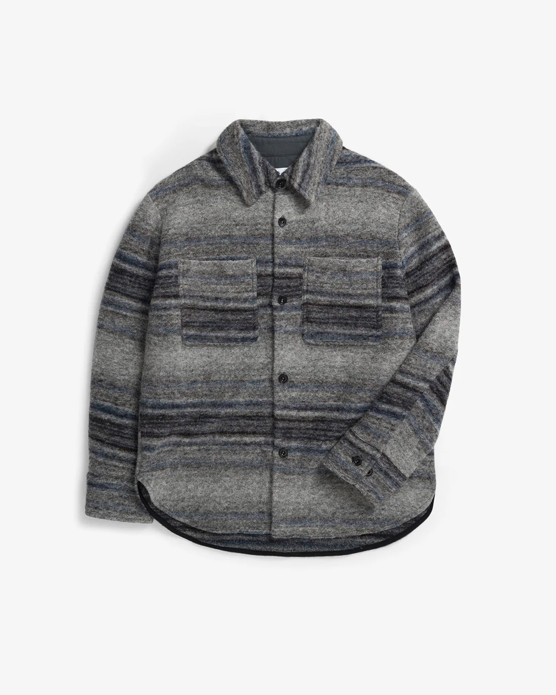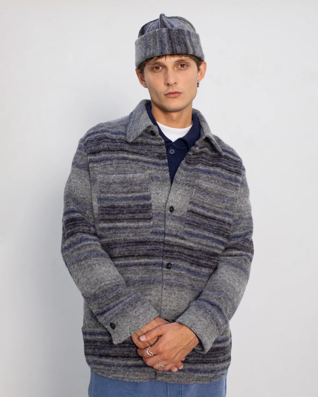 Extra warmes und winterfestes Overshirt, hergestellt aus einer hochwertigen italienischem Bio-Wollmischung aus 75% Bio-Wolle und 25% Bio-Baumwolle. Entworfen mit entspanntem Oversize Fit und einem gerundeten Saum und zwei Brusttaschen. Handgefertigt in Portugal.