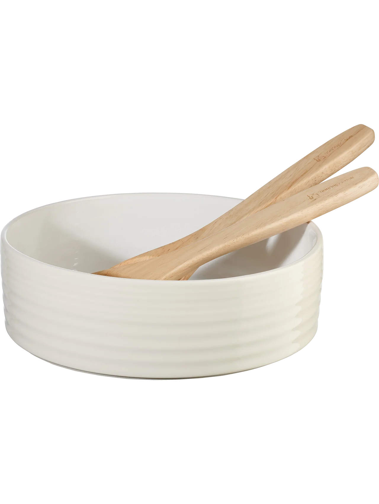 Salatschale aus der Kollektion re:glaze. Wir haben Tonabfälle und überschüssige Glasuren vor der Entsorgung gerettet, aufbereitet und für die Herstellung dieses Geschirrs wiederverwendet. Das Ergebnis ist ein Steinzeug aus recyceltem Ton, kombiniert mit einer unverwechselbar weißen und zu 100% recycelten Glasur – wir nennen sie „Sparkling White“.